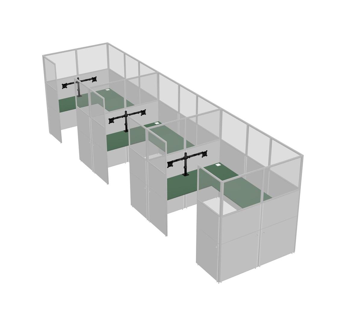 Green U-shaped Panel System For 3 Person + Monitor Arm (double Arms) For 3 User(s)