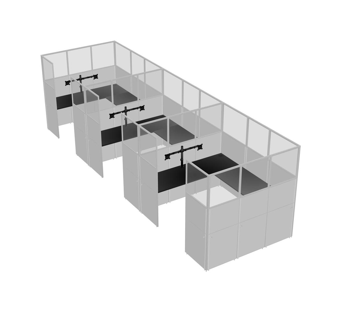Black U-shaped Panel System For 3 Person + Monitor Arm (double Arms) For 3 User(s)