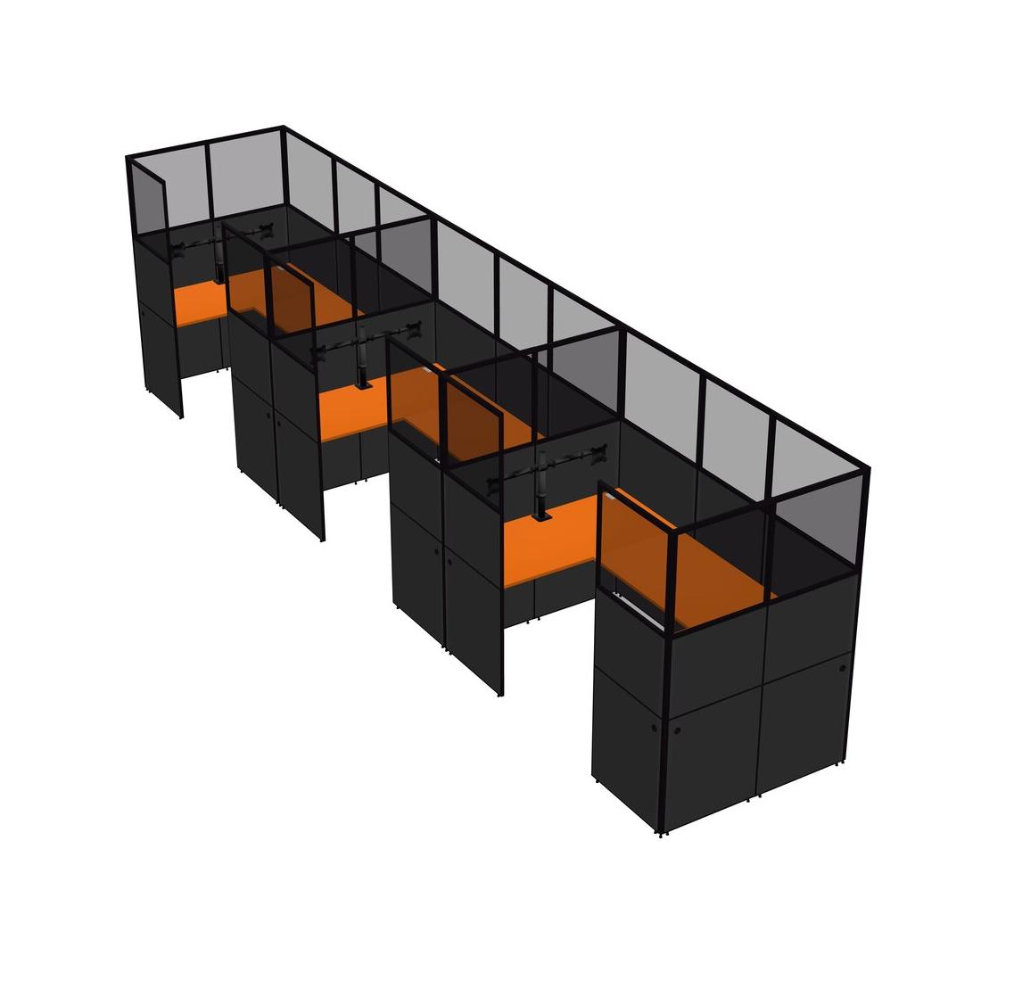 Orange U-shaped Panel System For 3 Person + Monitor Arm (double Arms) For 3 User(s)