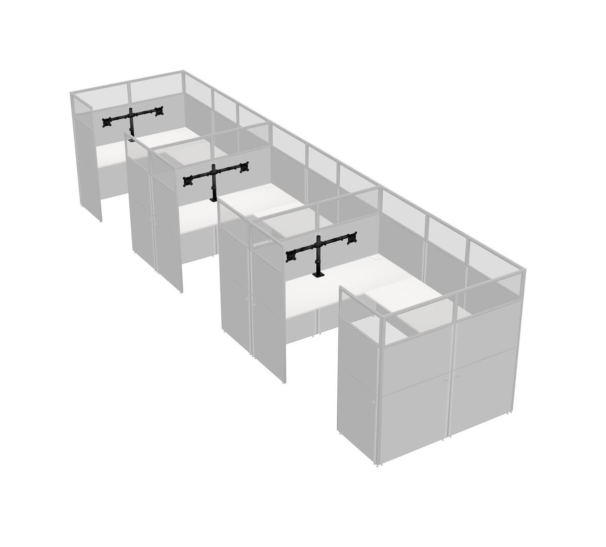 White U-shaped Panel System For 3 Person + Monitor Arm (double Arms) For 3 User(s)