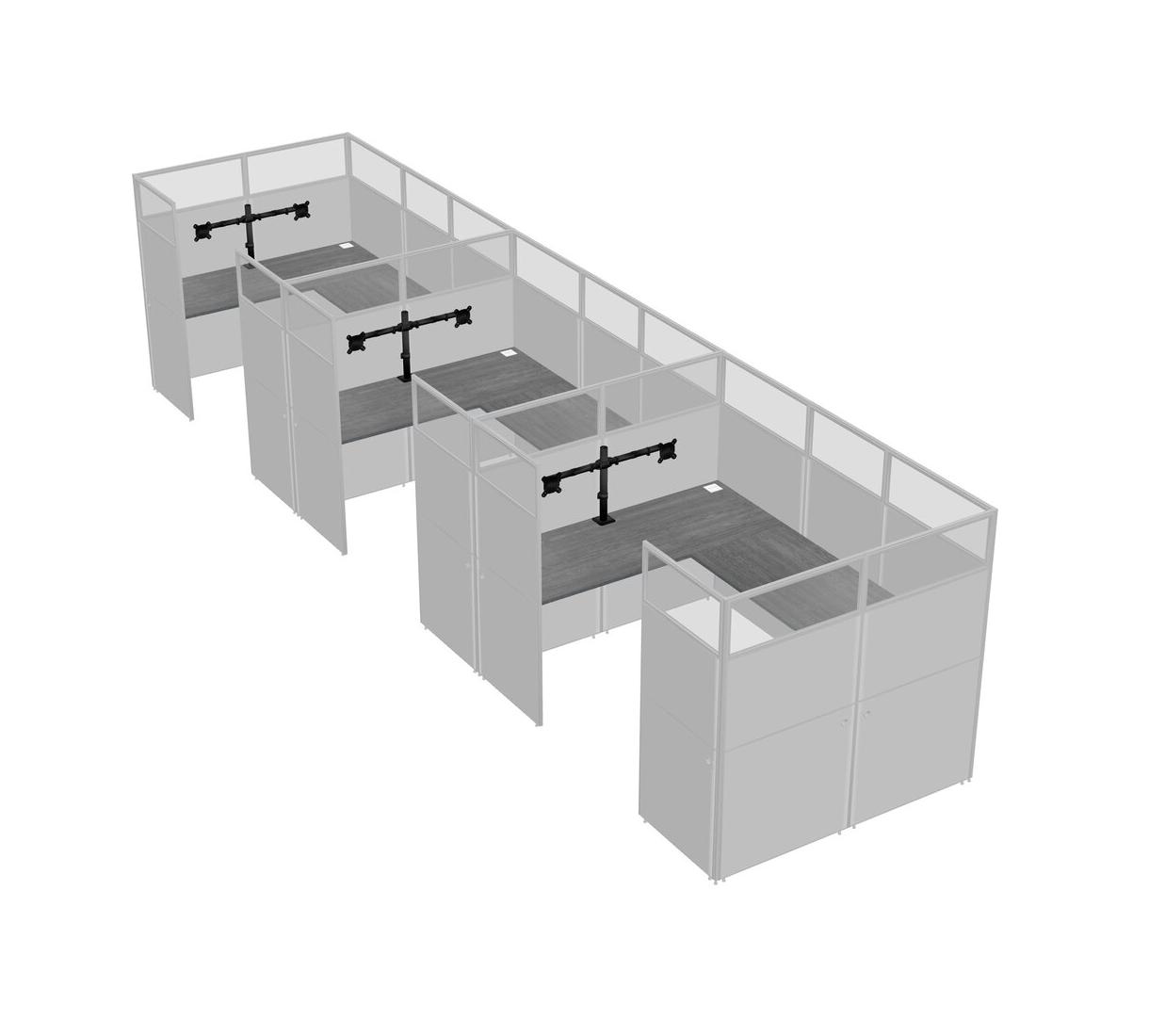 Grey U-shaped Panel System For 3 Person + Monitor Arm (double Arms) For 3 User(s)