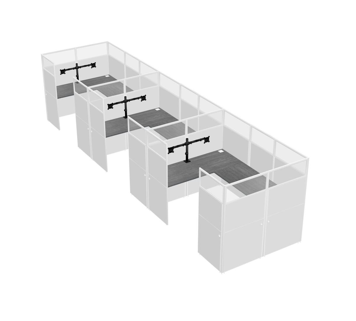 Grey U-shaped Panel System For 3 Person + Monitor Arm (double Arms) For 3 User(s)