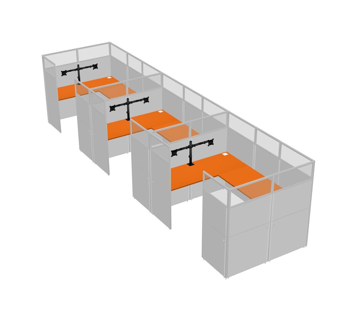 Orange U-shaped Panel System For 3 Person + Monitor Arm (double Arms) For 3 User(s)