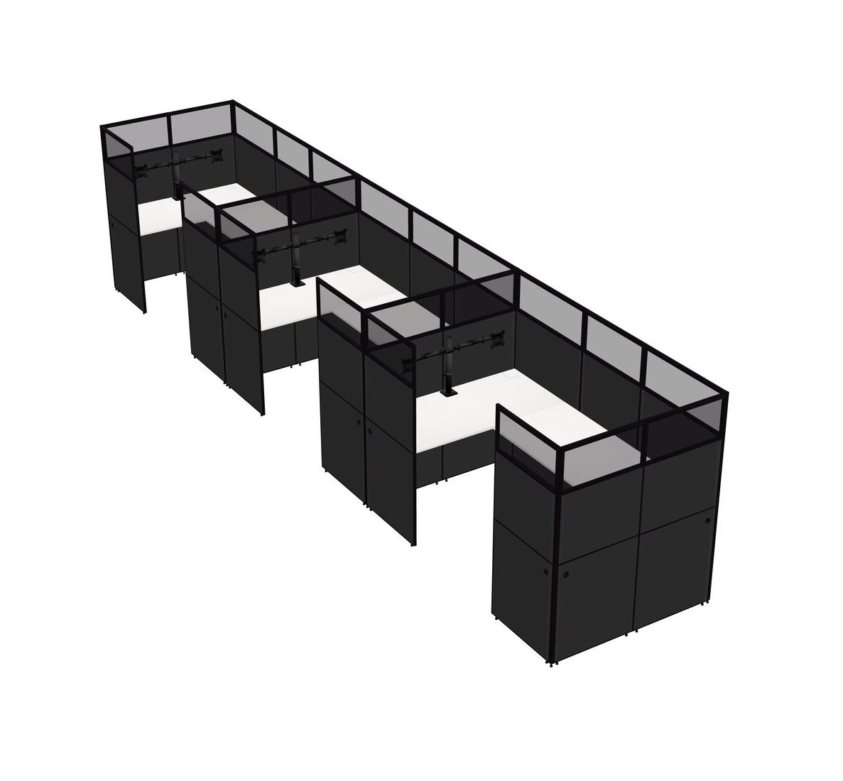 White U-shaped Panel System For 3 Person + Monitor Arm (double Arms) For 3 User(s)
