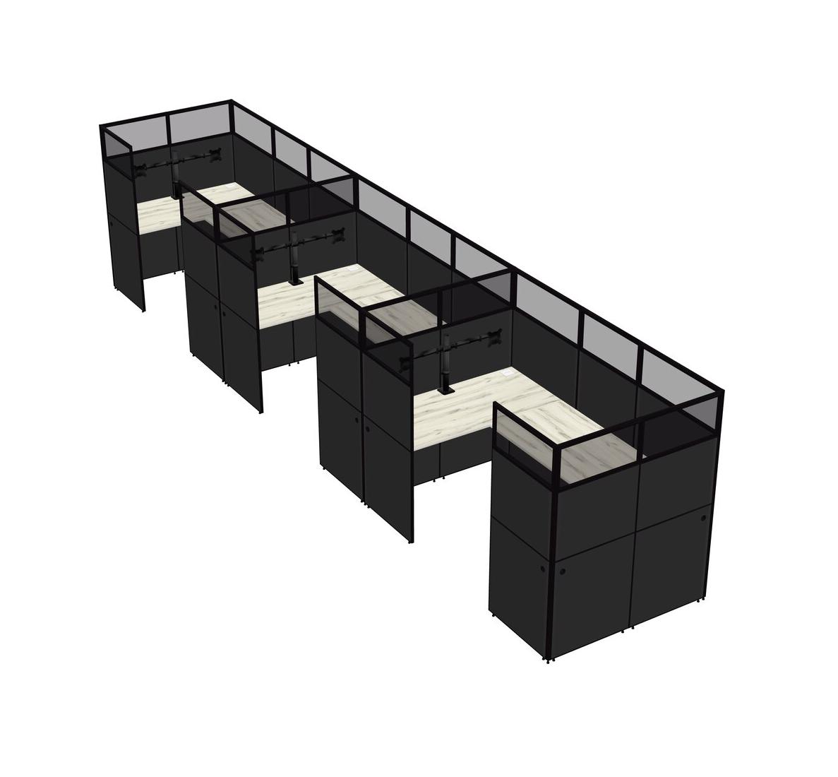 Heinne Holz U-shaped Panel System For 3 Person + Monitor Arm (double Arms) For 3 User(s)