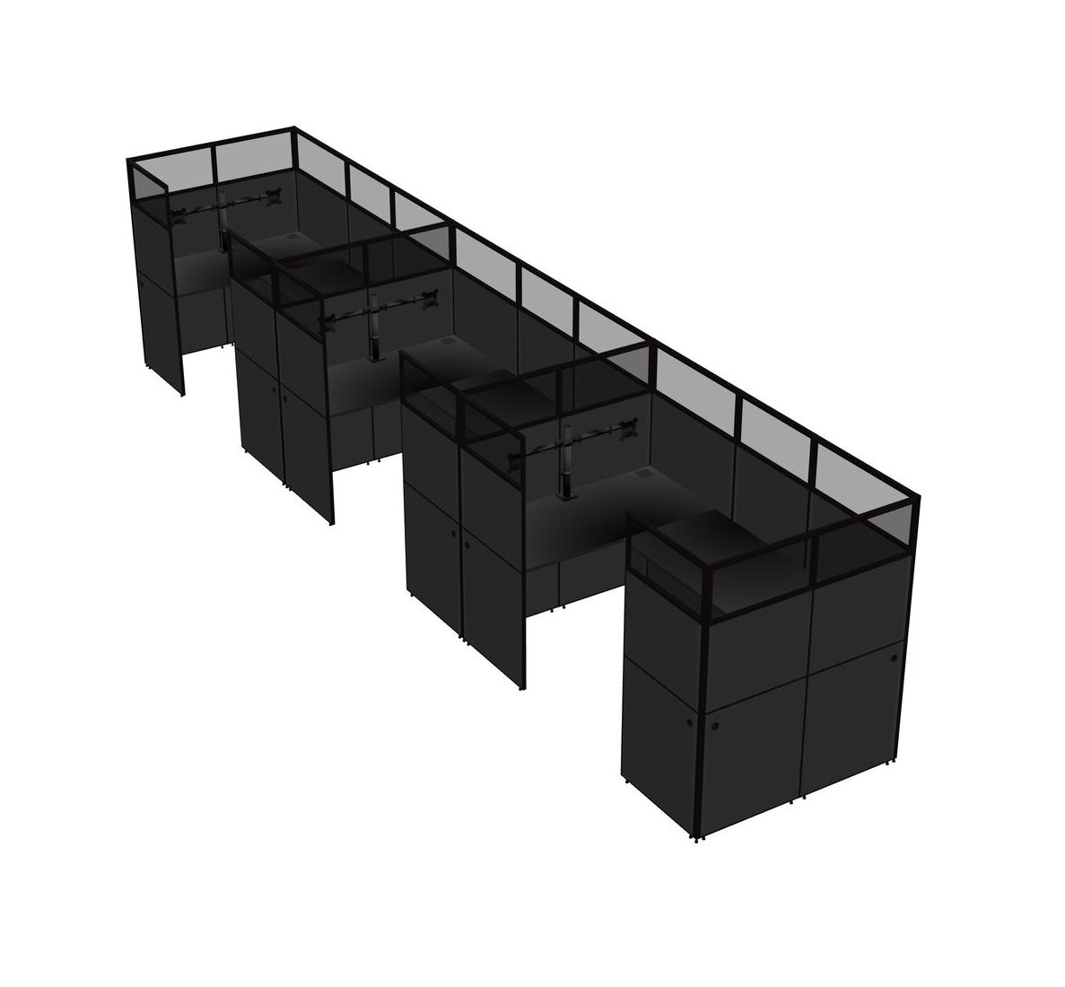 Black U-shaped Panel System For 3 Person + Monitor Arm (double Arms) For 3 User(s)