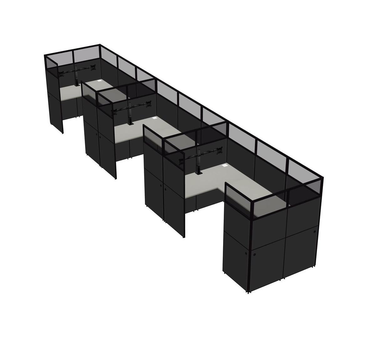 Grey Shadows U-shaped Panel System For 3 Person + Monitor Arm (double Arms) For 3 User(s)