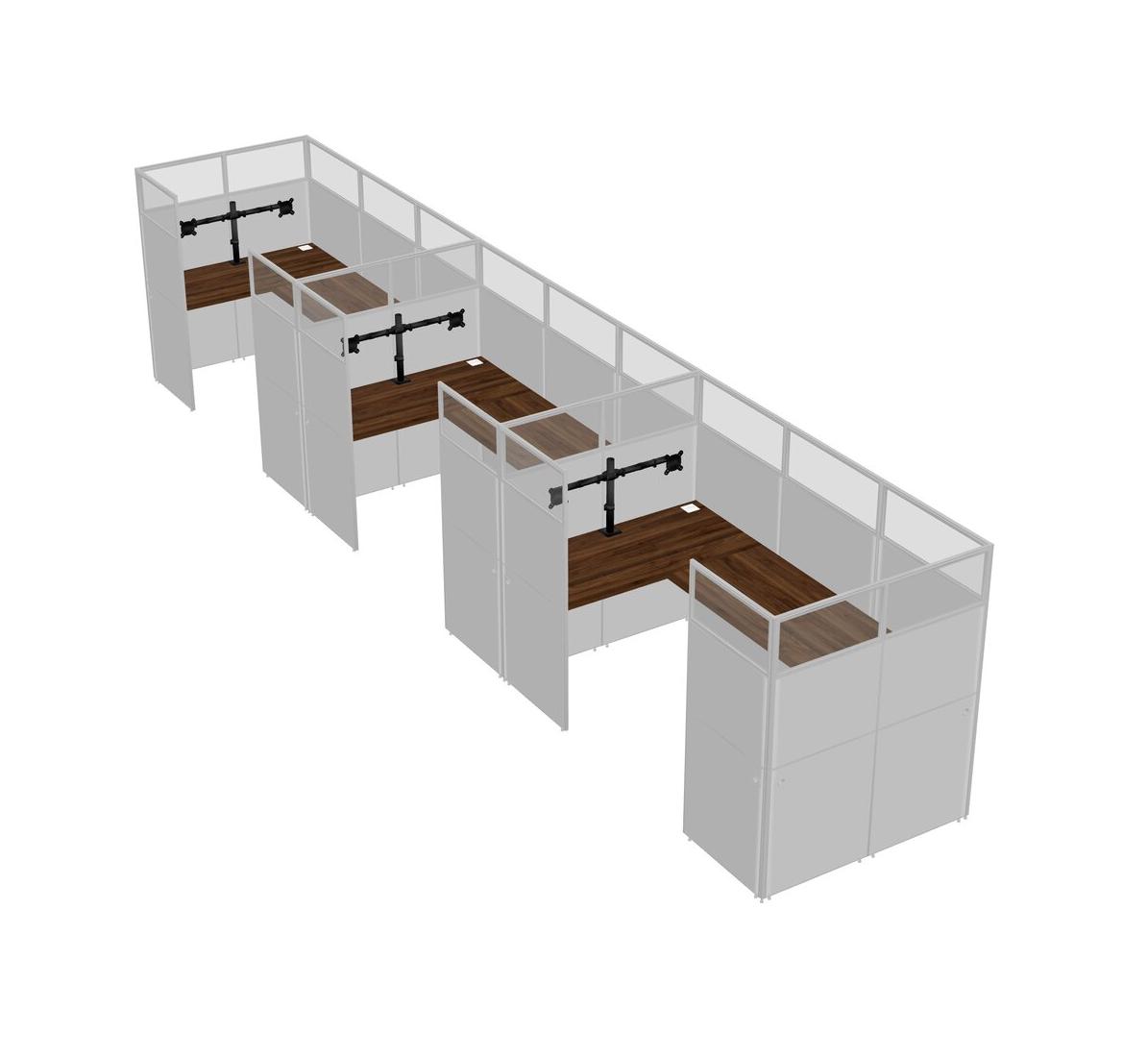 Columbia Walnut U-shaped Panel System For 3 Person + Monitor Arm (double Arms) For 3 User(s)