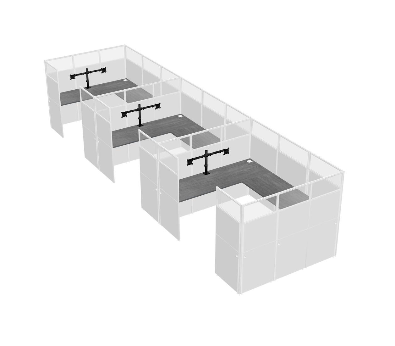 Grey U-shaped Panel System For 3 Person + Monitor Arm (double Arms) For 3 User(s)