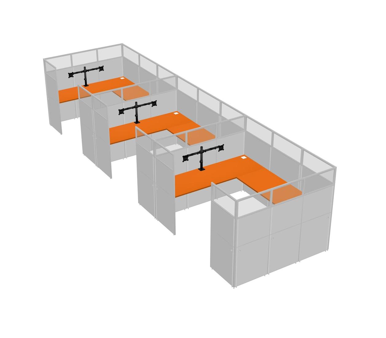 Orange U-shaped Panel System For 3 Person + Monitor Arm (double Arms) For 3 User(s)