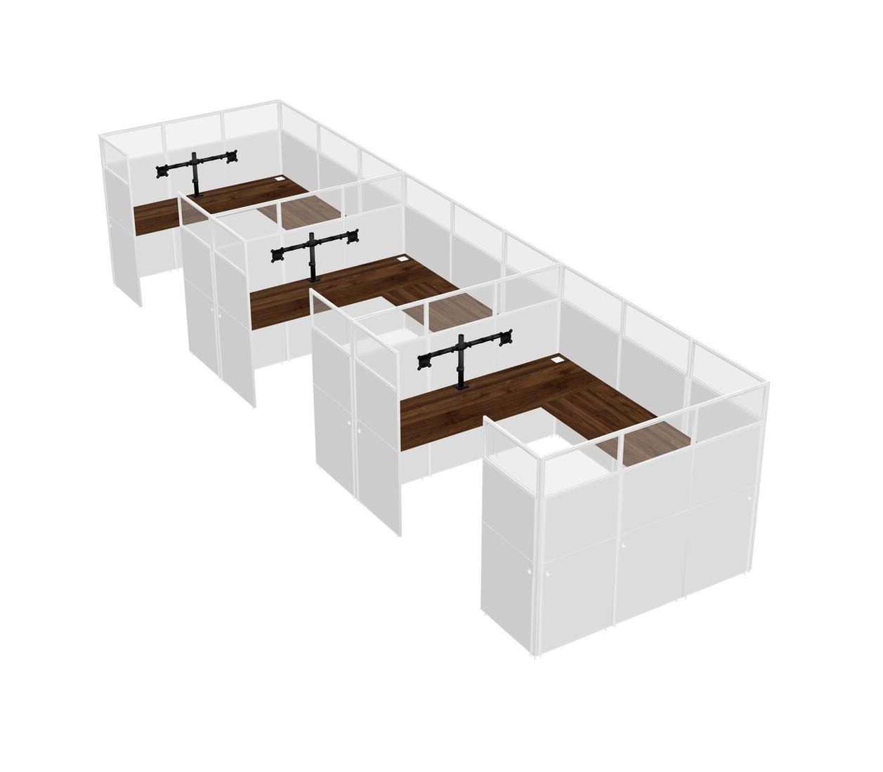 Columbia Walnut U-shaped Panel System For 3 Person + Monitor Arm (double Arms) For 3 User(s)