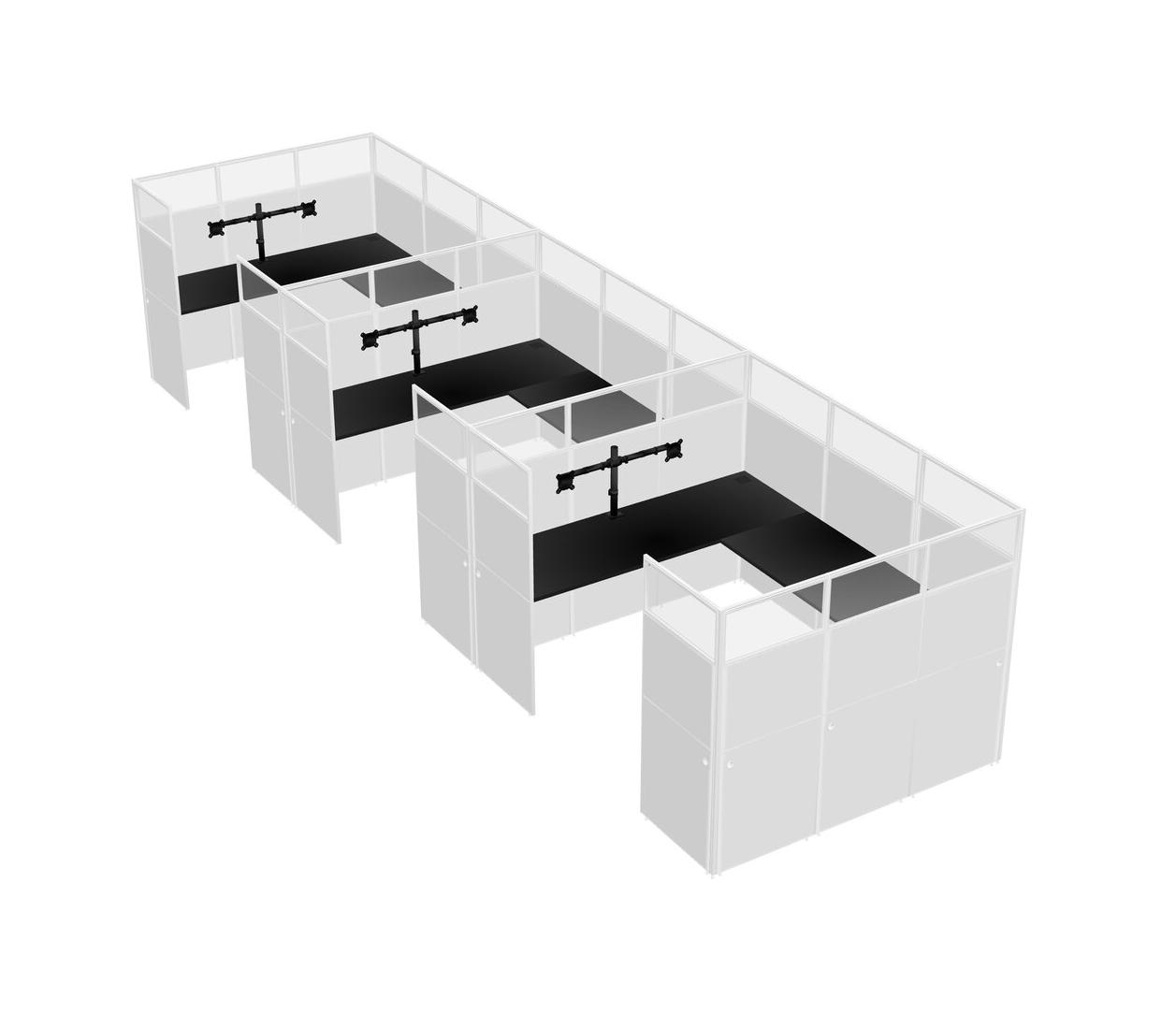 Black U-shaped Panel System For 3 Person + Monitor Arm (double Arms) For 3 User(s)