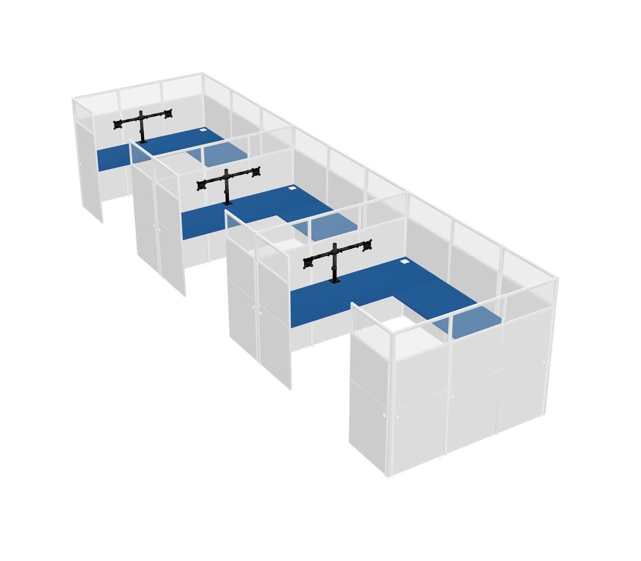 Prism Blue U-shaped Panel System For 3 Person + Monitor Arm (double Arms) For 3 User(s)