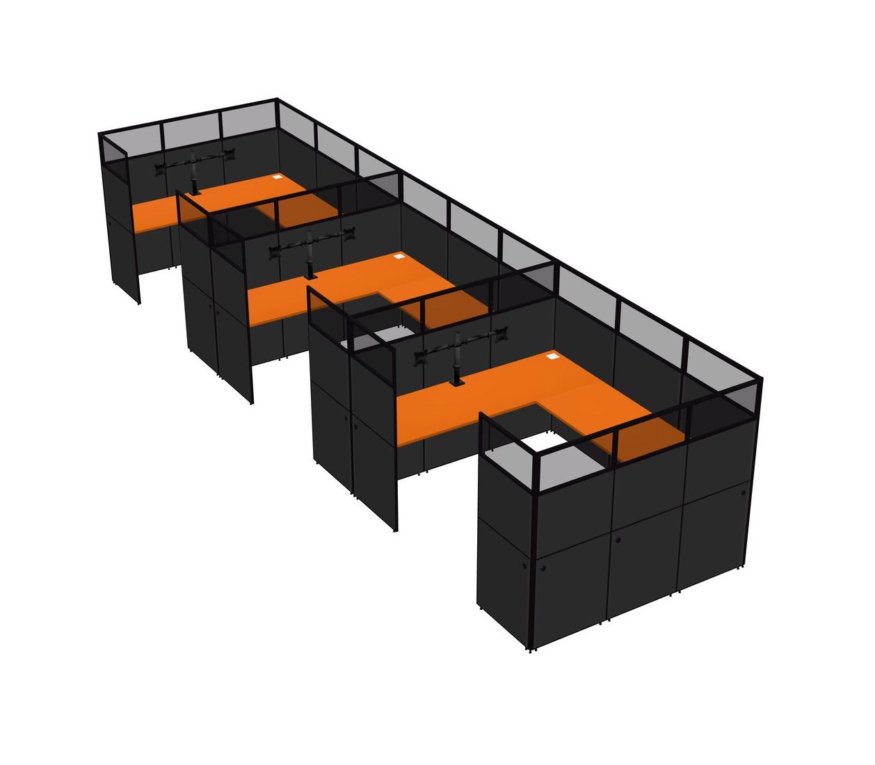 Orange U-shaped Panel System For 3 Person + Monitor Arm (double Arms) For 3 User(s)