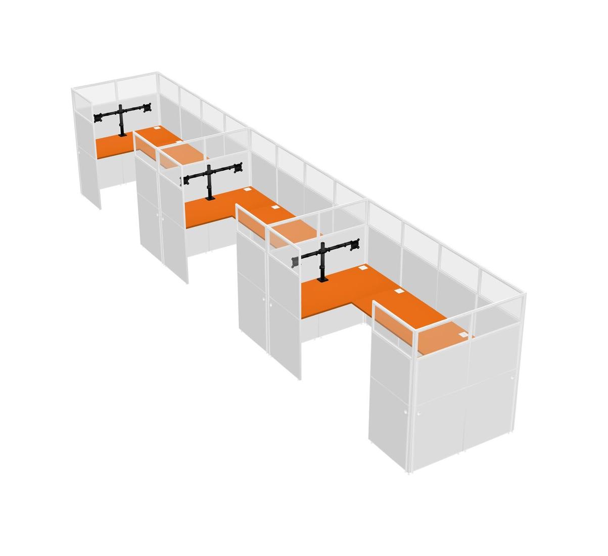 Orange U-shaped Panel System For 3 Person + Monitor Arm (double Arms) For 3 User(s)