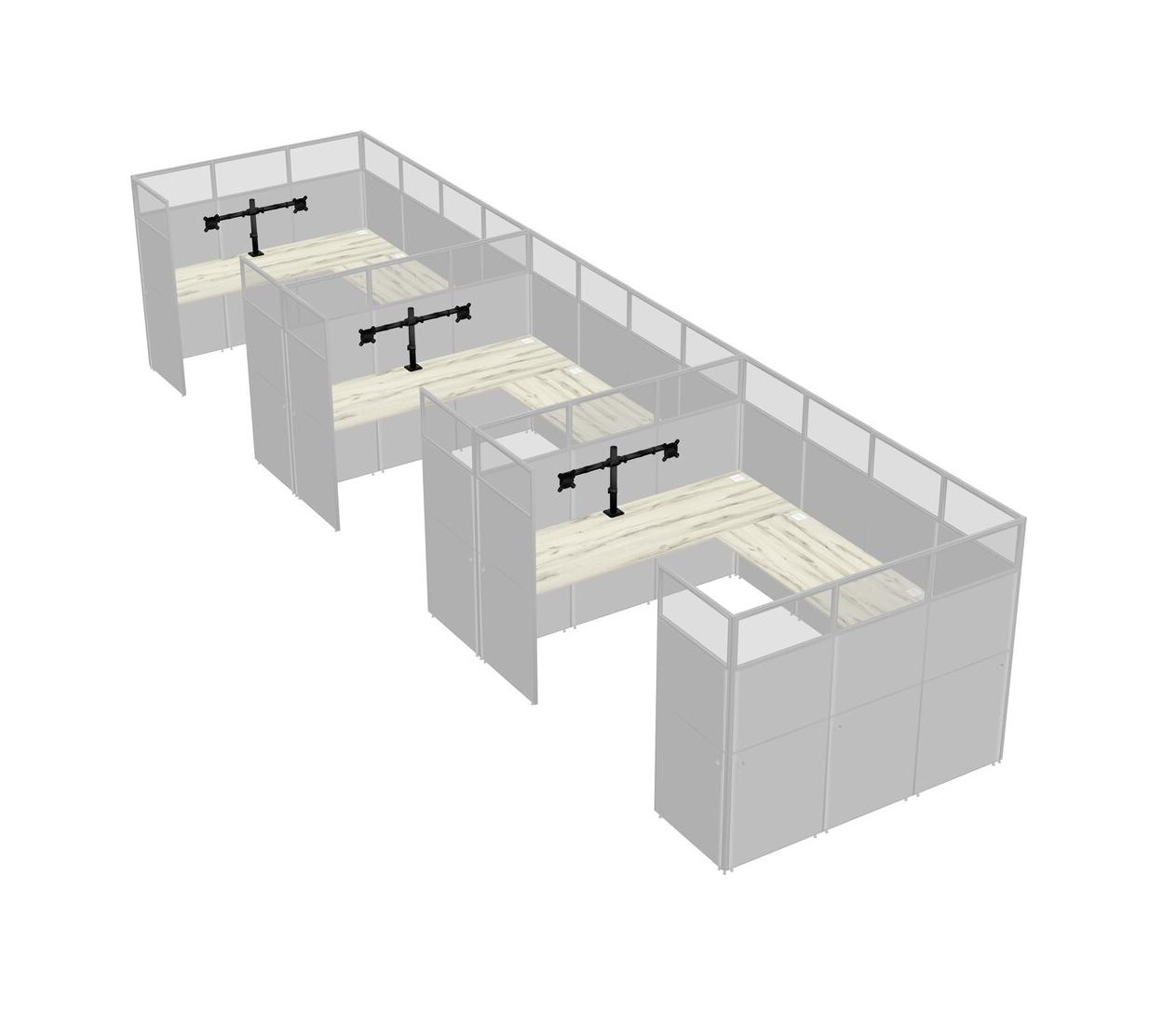 Heinne Holz U-shaped Panel System For 3 Person + Monitor Arm (double Arms) For 3 User(s)