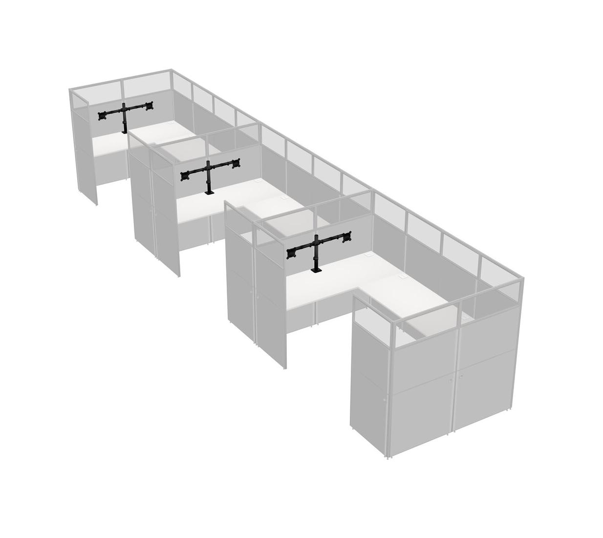 White U-shaped Panel System For 3 Person + Monitor Arm (double Arms) For 3 User(s)