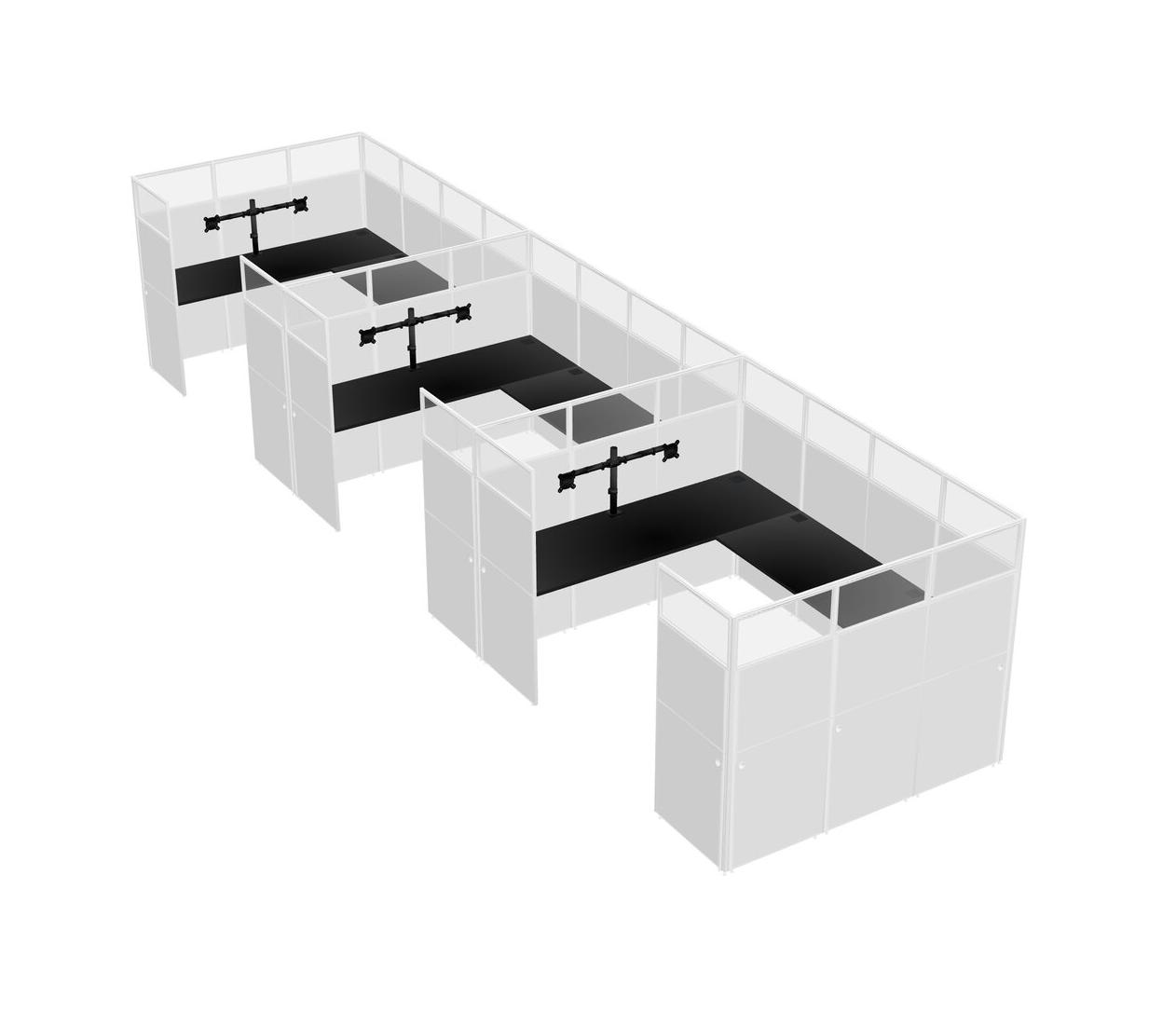 Black U-shaped Panel System For 3 Person + Monitor Arm (double Arms) For 3 User(s)