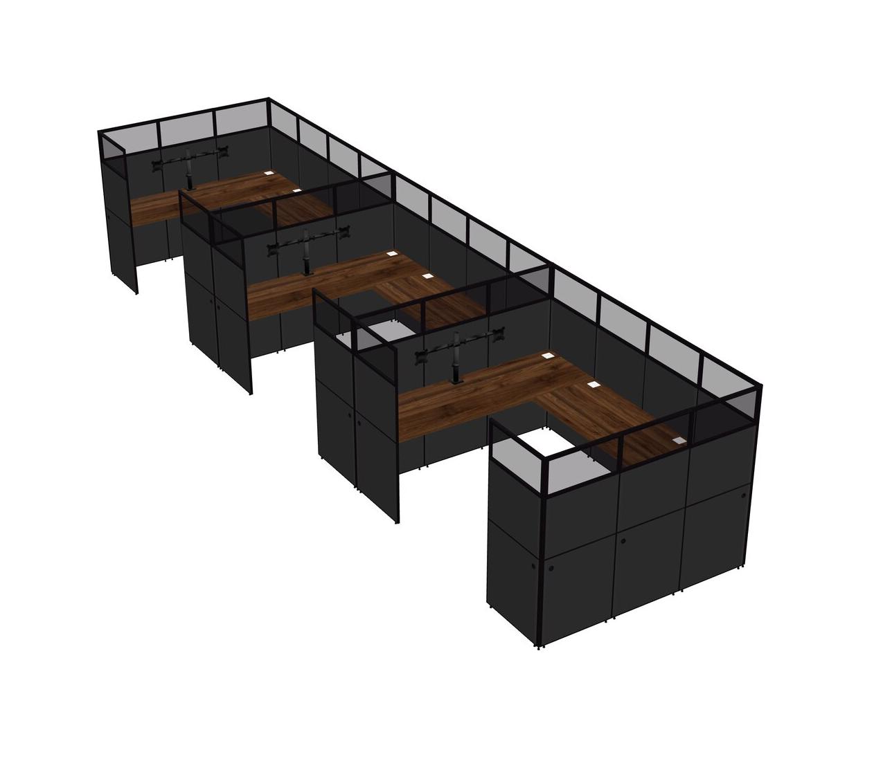 Columbia Walnut U-shaped Panel System For 3 Person + Monitor Arm (double Arms) For 3 User(s)