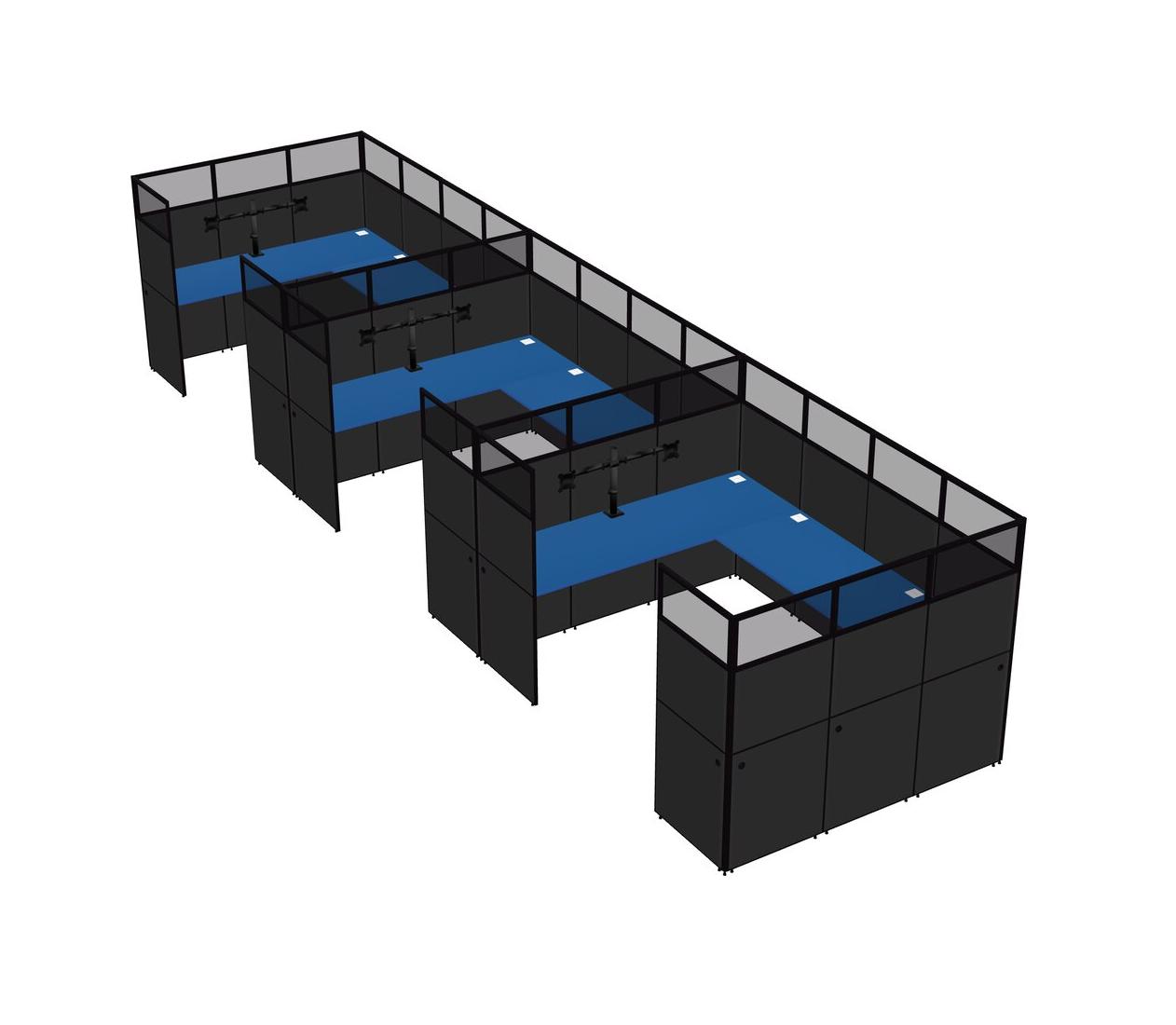 Prism Blue U-shaped Panel System For 3 Person + Monitor Arm (double Arms) For 3 User(s)