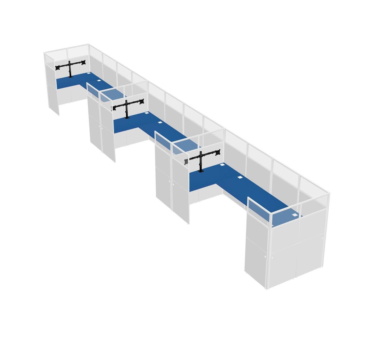 Prism Blue U-shaped Panel System For 3 Person + Monitor Arm (double Arms) For 3 User(s)
