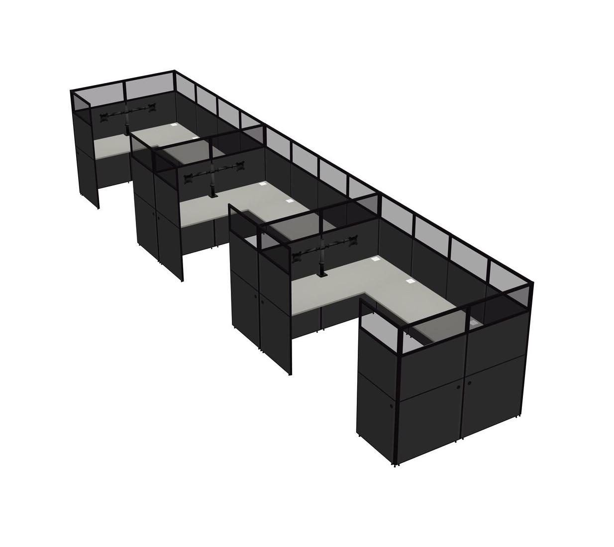 Grey Shadows U-shaped Panel System For 3 Person + Monitor Arm (double Arms) For 3 User(s)