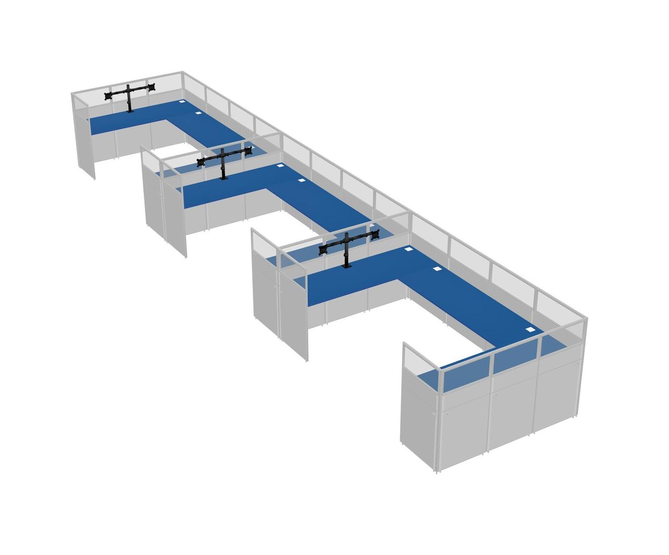 Prism Blue U-shaped Panel System For 3 Person + Monitor Arm (double Arms) For 3 User(s)