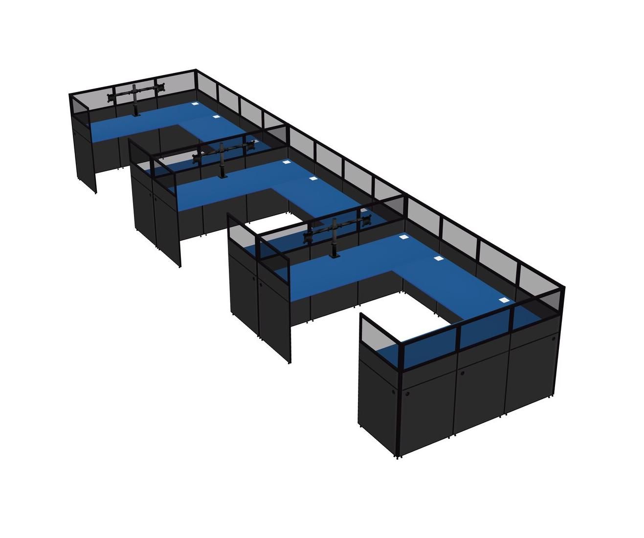 Prism Blue U-shaped Panel System For 3 Person + Monitor Arm (double Arms) For 3 User(s)