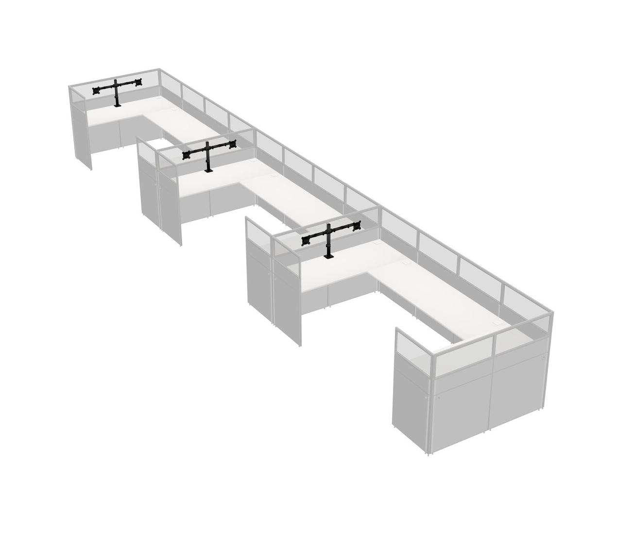 White U-shaped Panel System For 3 Person + Monitor Arm (double Arms) For 3 User(s)