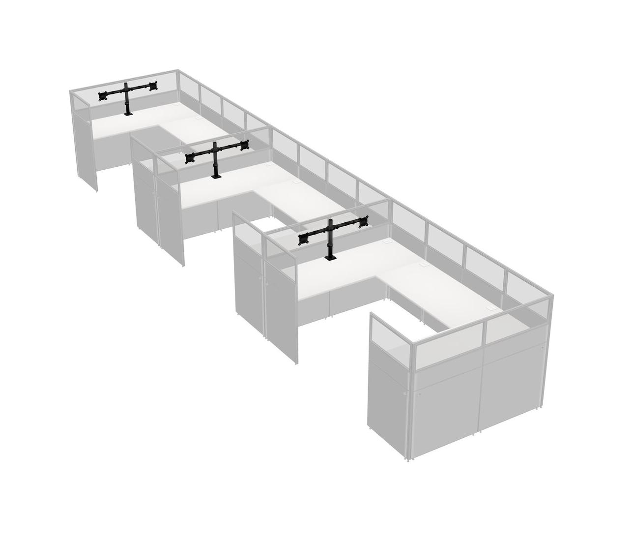 White U-shaped Panel System For 3 Person + Monitor Arm (double Arms) For 3 User(s)