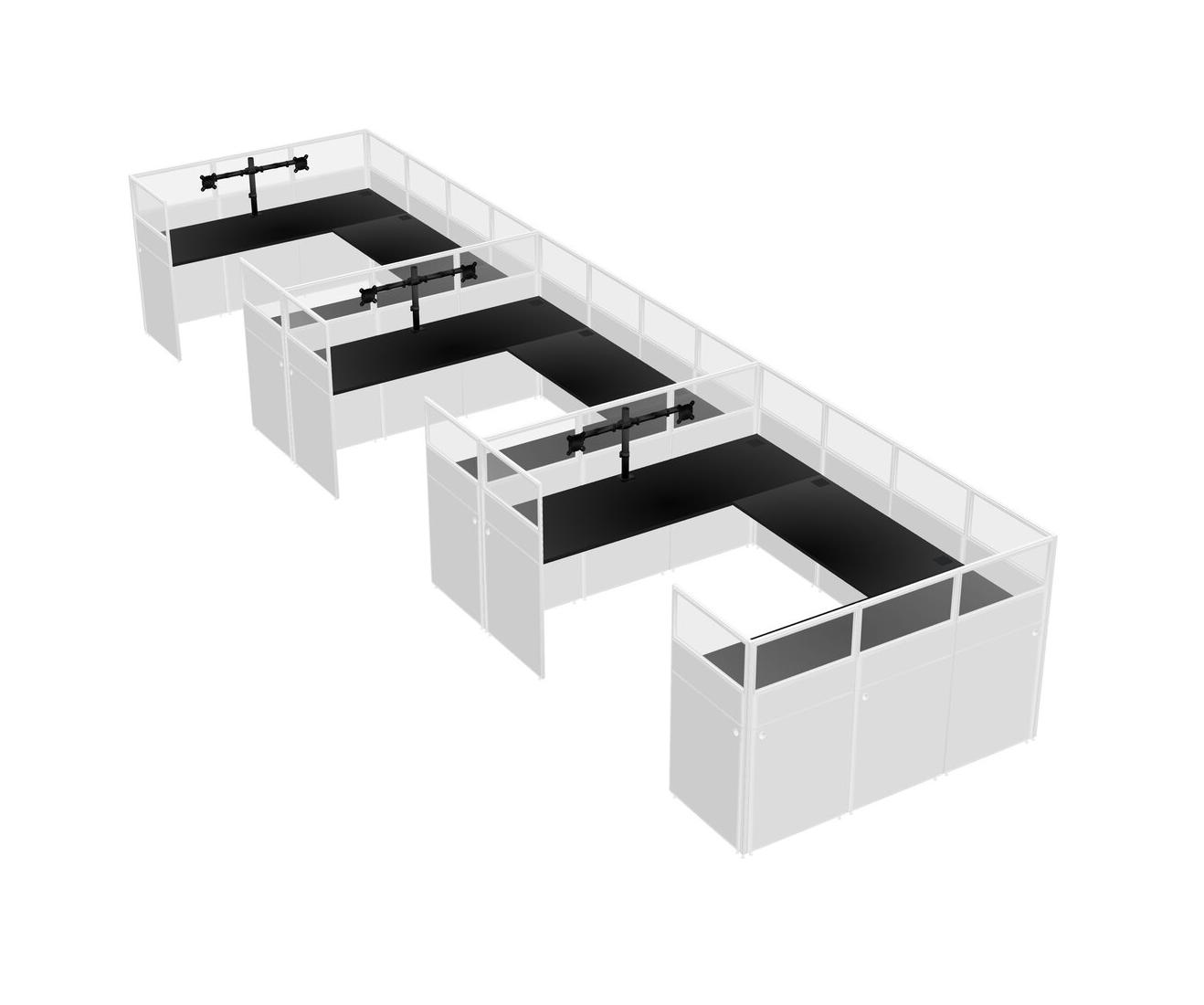 Black U-shaped Panel System For 3 Person + Monitor Arm (double Arms) For 3 User(s)