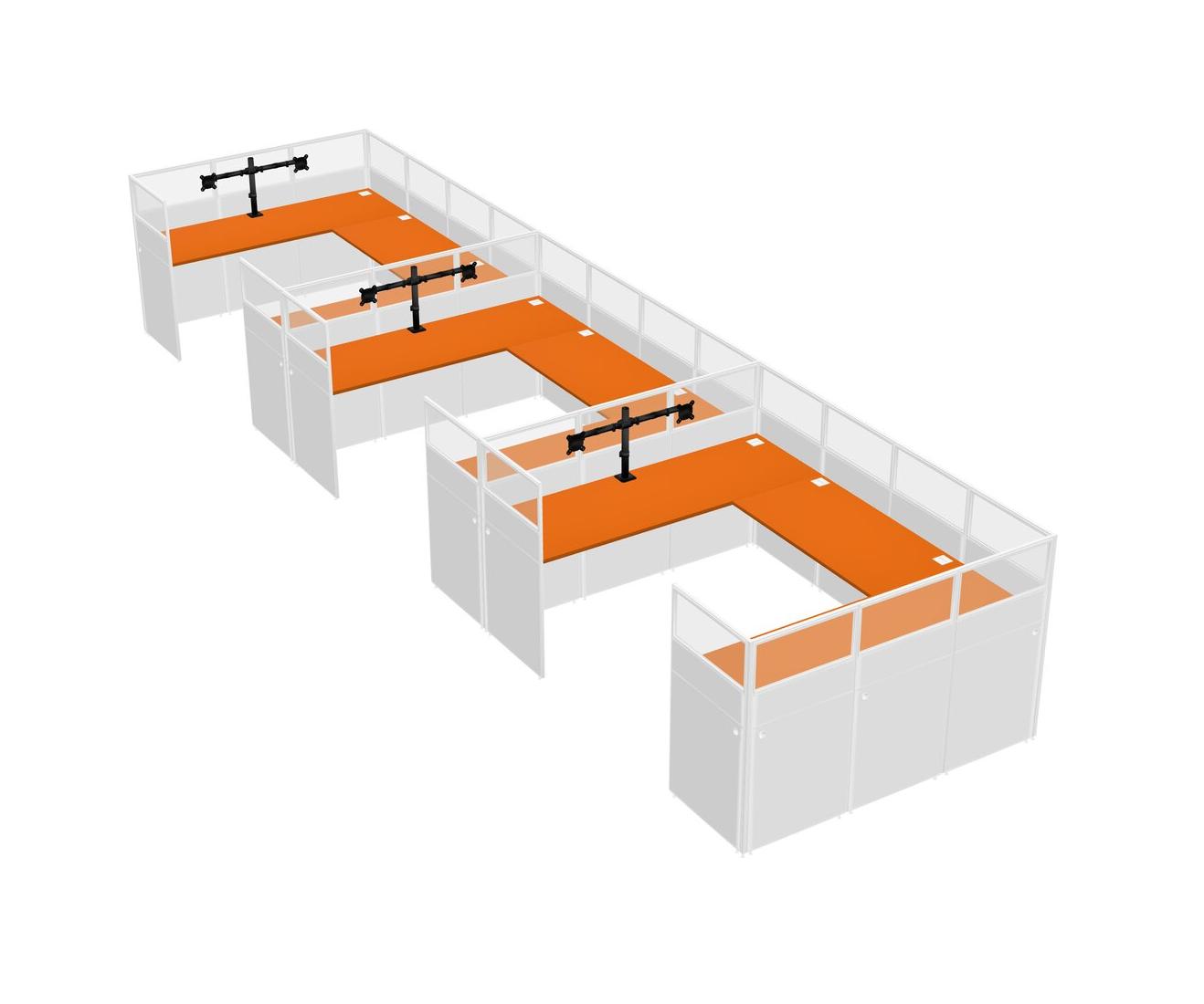 Orange U-shaped Panel System For 3 Person + Monitor Arm (double Arms) For 3 User(s)