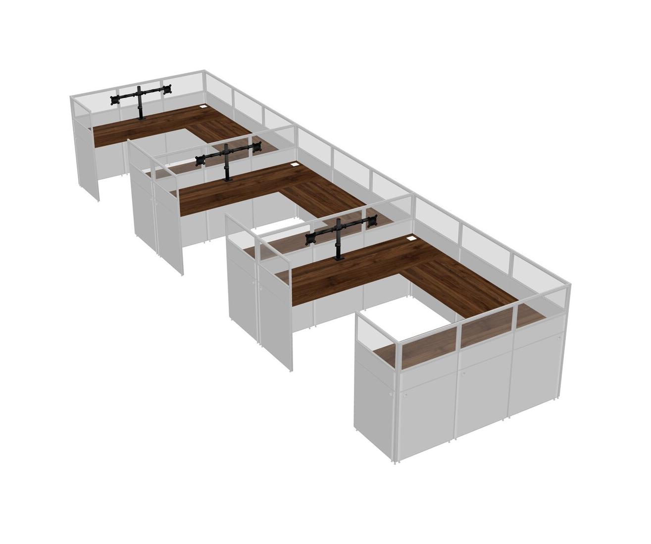 Columbia Walnut U-shaped Panel System For 3 Person + Monitor Arm (double Arms) For 3 User(s)