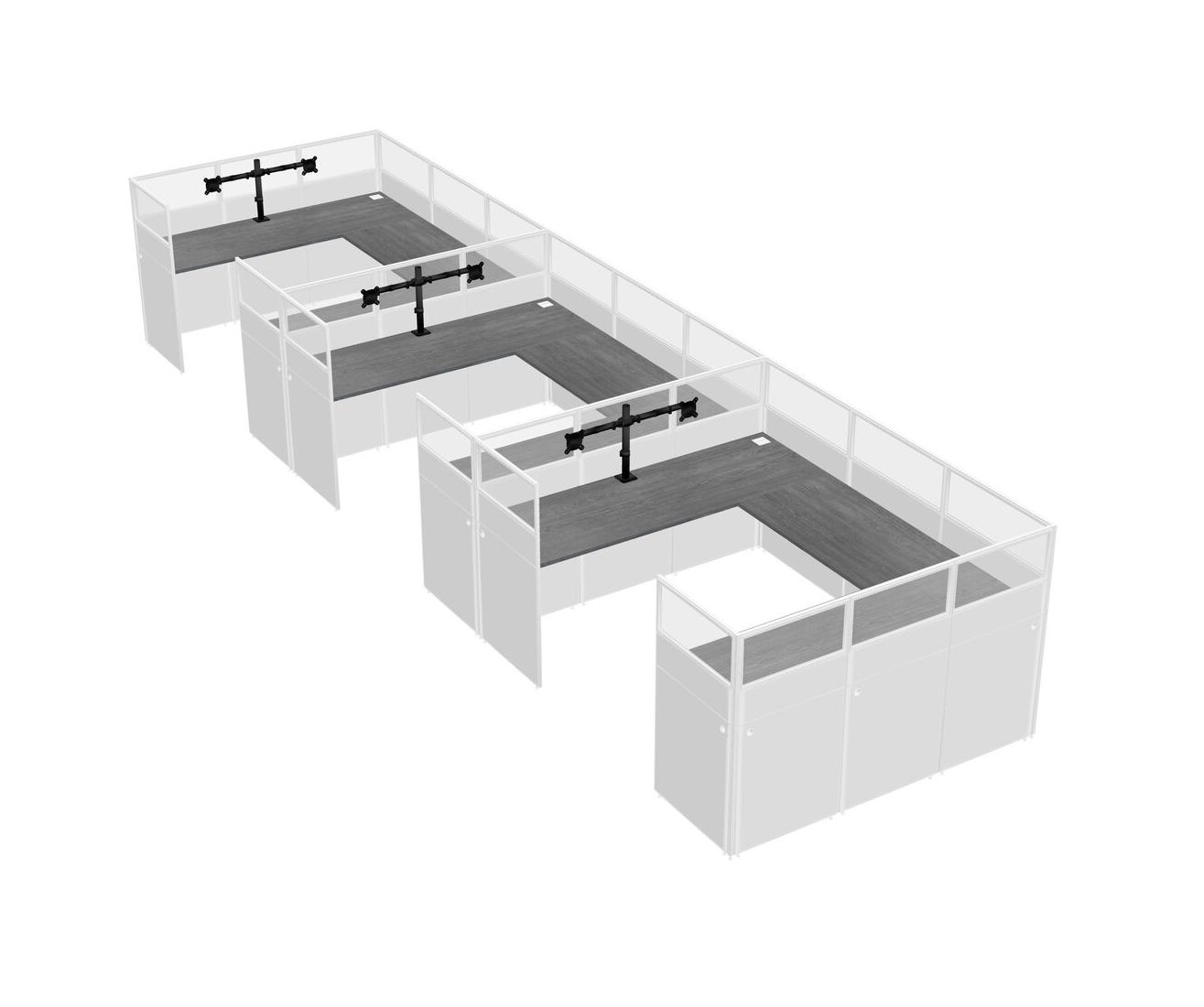 Grey U-shaped Panel System For 3 Person + Monitor Arm (double Arms) For 3 User(s)