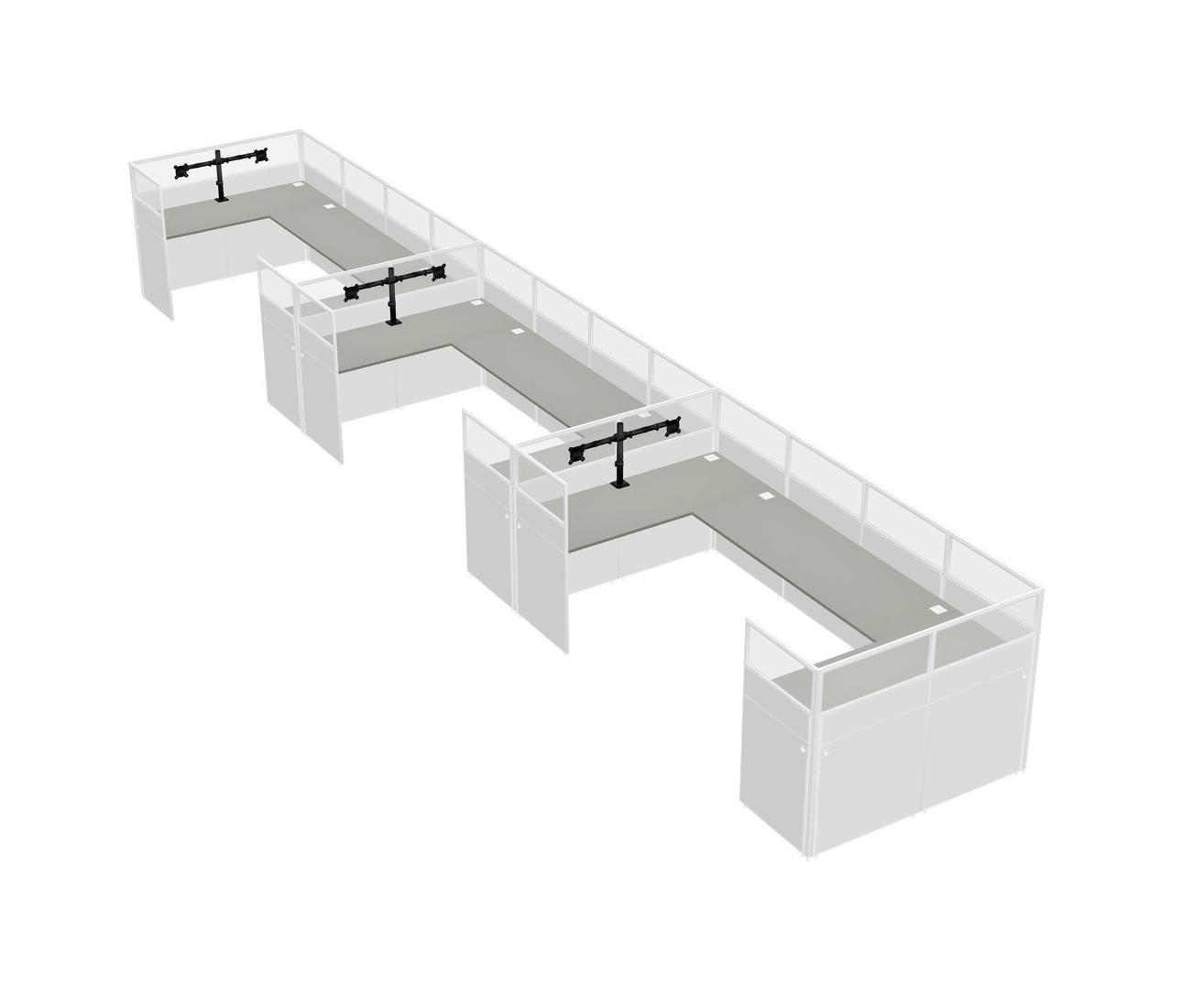 Grey Shadows U-shaped Panel System For 3 Person + Monitor Arm (double Arms) For 3 User(s)