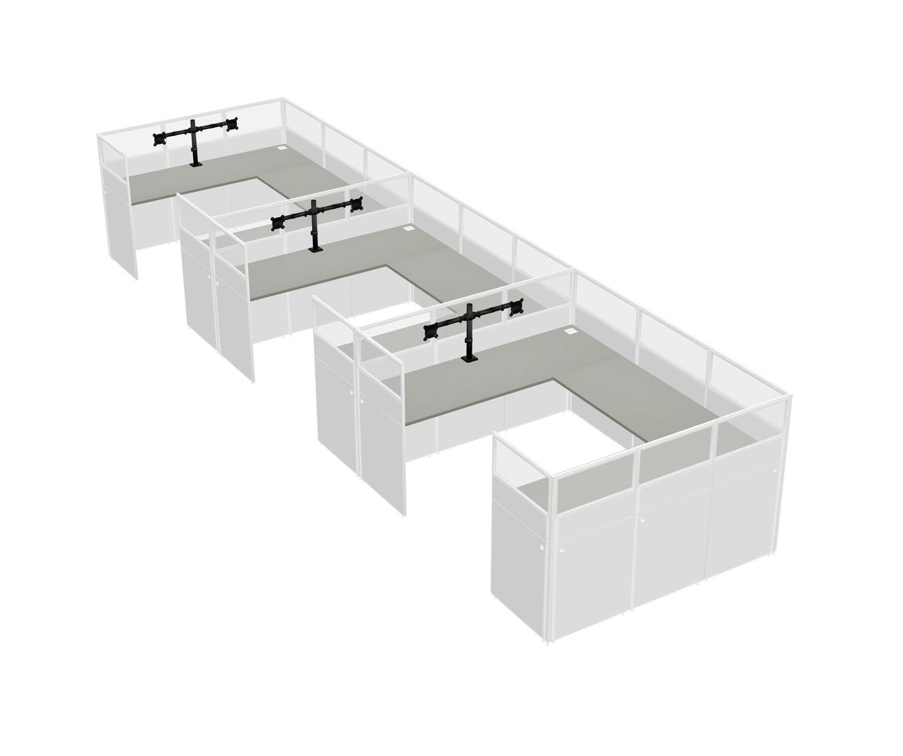 Grey Shadows U-shaped Panel System For 3 Person + Monitor Arm (double Arms) For 3 User(s)