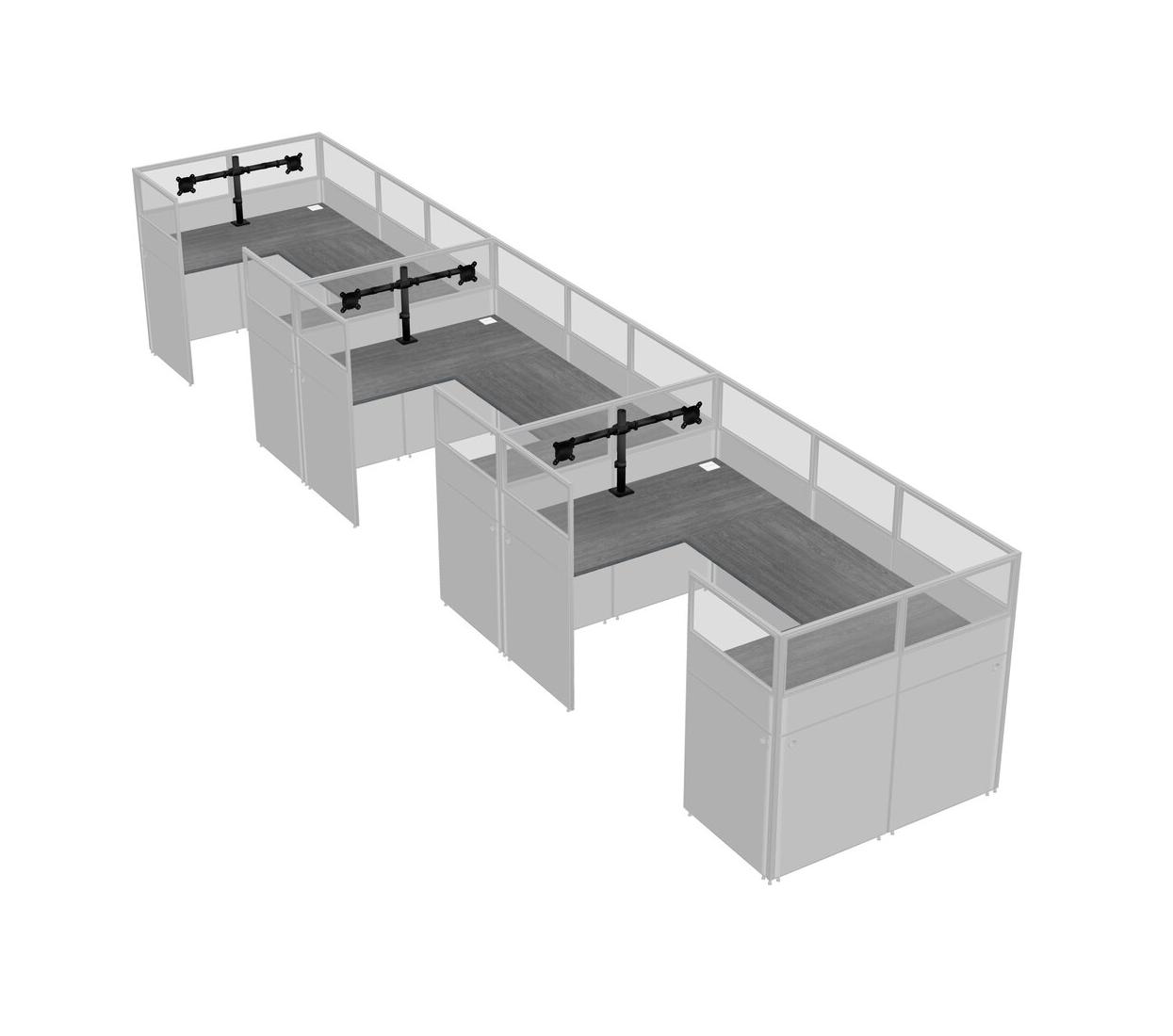 Grey U-shaped Panel System For 3 Person + Monitor Arm (double Arms) For 3 User(s)