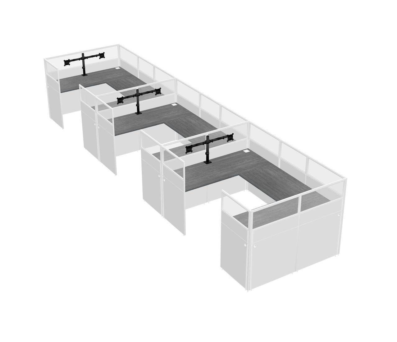 Grey U-shaped Panel System For 3 Person + Monitor Arm (double Arms) For 3 User(s)