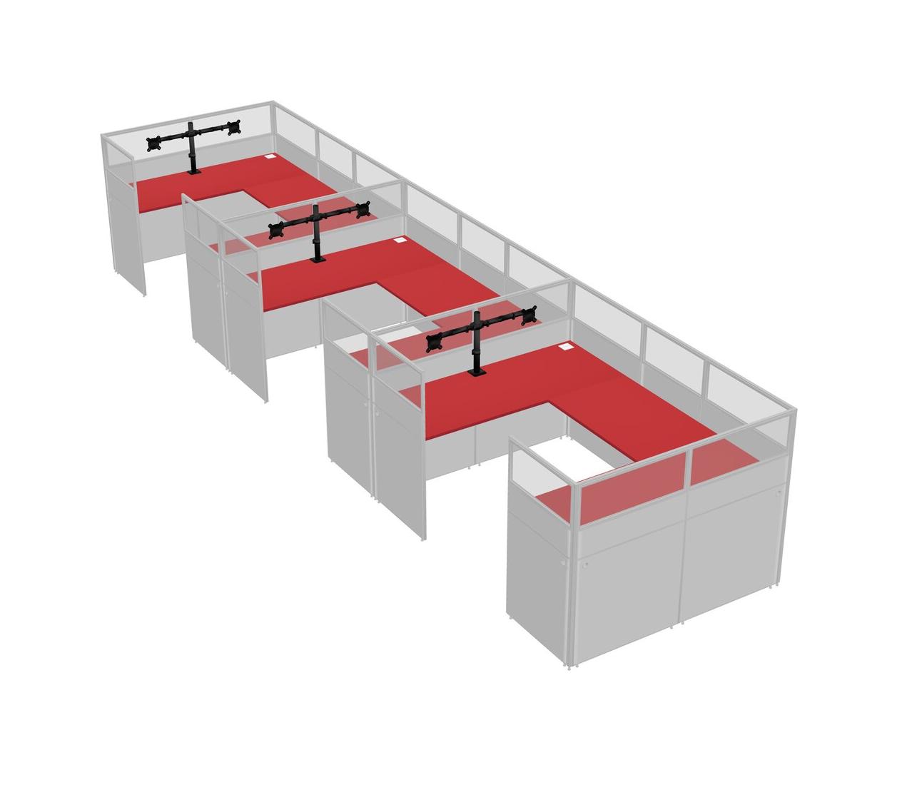 Prism Red U-shaped Panel System For 3 Person + Monitor Arm (double Arms) For 3 User(s)