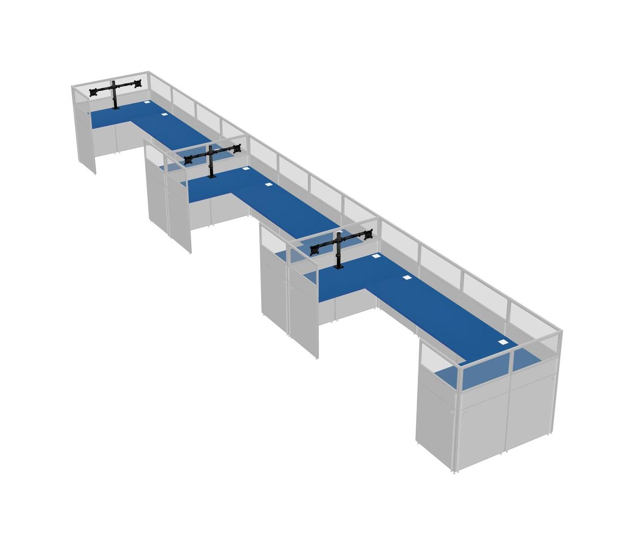 Prism Blue U-shaped Panel System For 3 Person + Monitor Arm (double Arms) For 3 User(s)