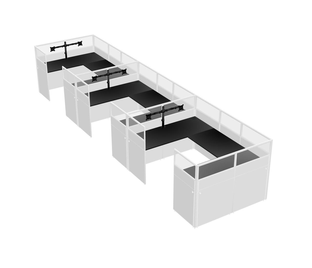 Black U-shaped Panel System For 3 Person + Monitor Arm (double Arms) For 3 User(s)