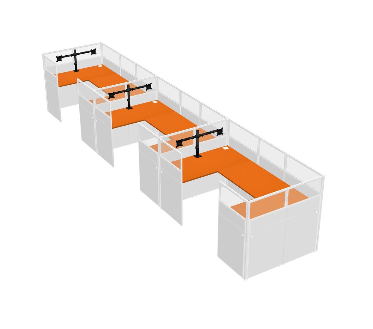 Orange U-shaped Panel System For 3 Person + Monitor Arm (double Arms) For 3 User(s)