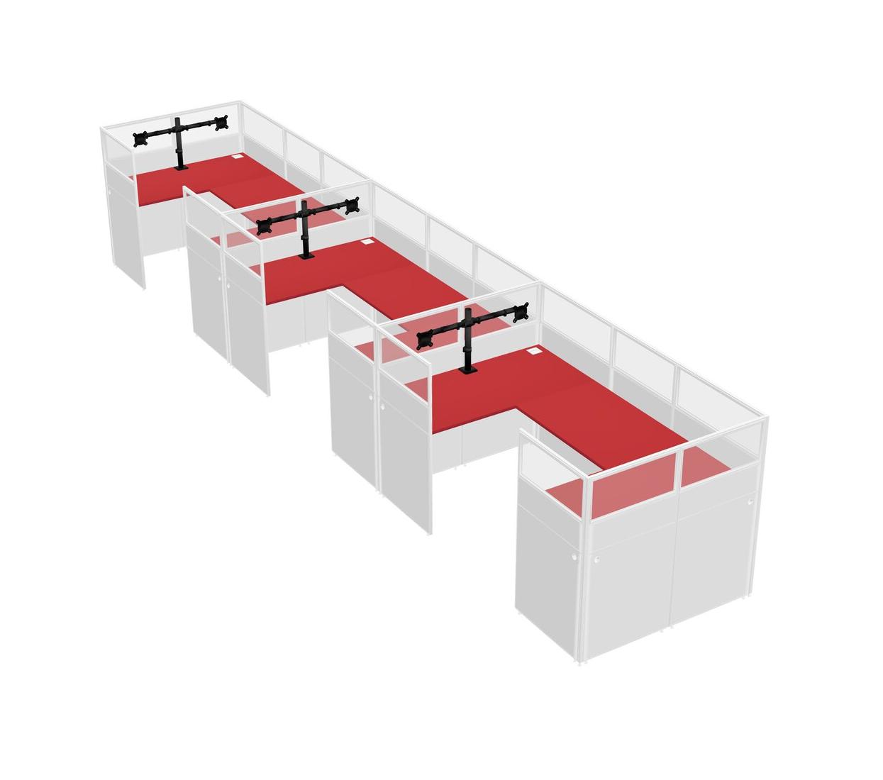 Prism Red U-shaped Panel System For 3 Person + Monitor Arm (double Arms) For 3 User(s)