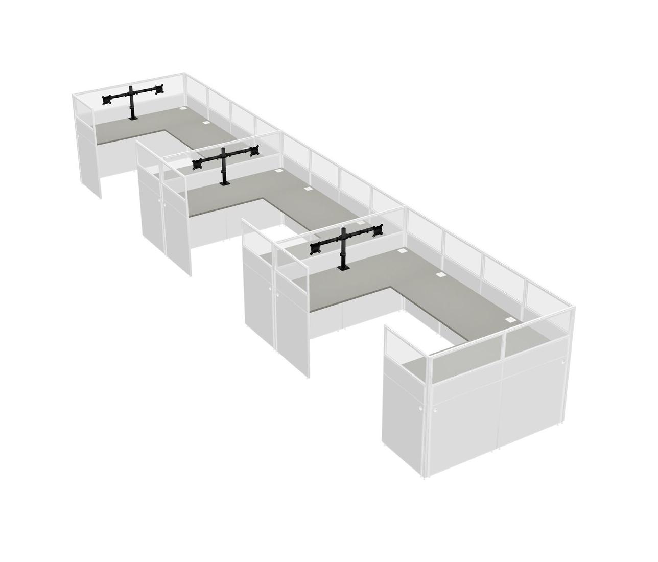 Grey Shadows U-shaped Panel System For 3 Person + Monitor Arm (double Arms) For 3 User(s)