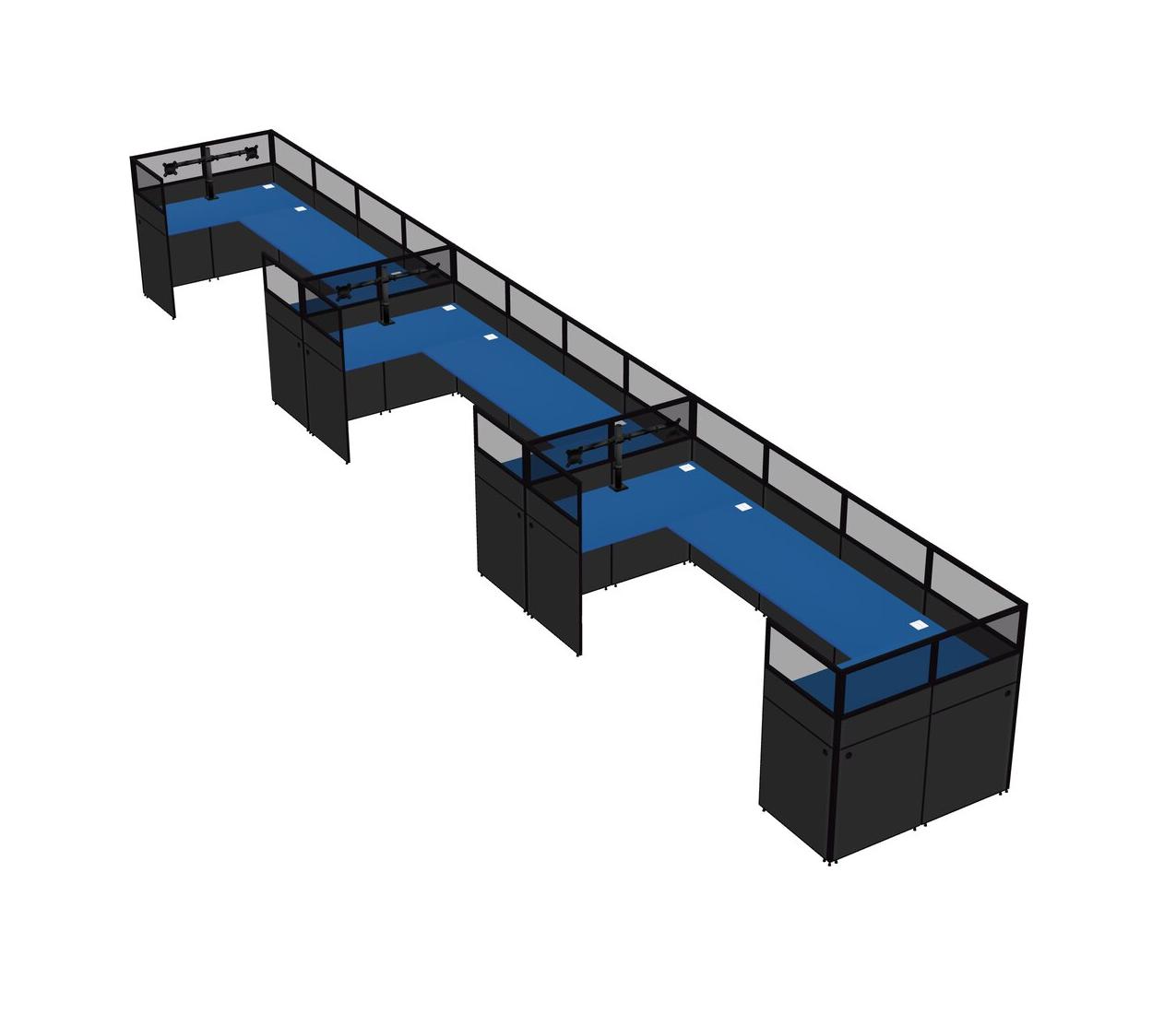 Prism Blue U-shaped Panel System For 3 Person + Monitor Arm (double Arms) For 3 User(s)