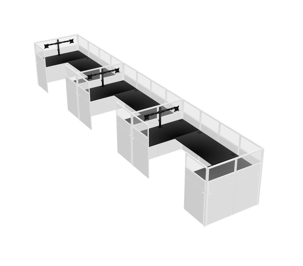 Black U-shaped Panel System For 3 Person + Monitor Arm (double Arms) For 3 User(s)