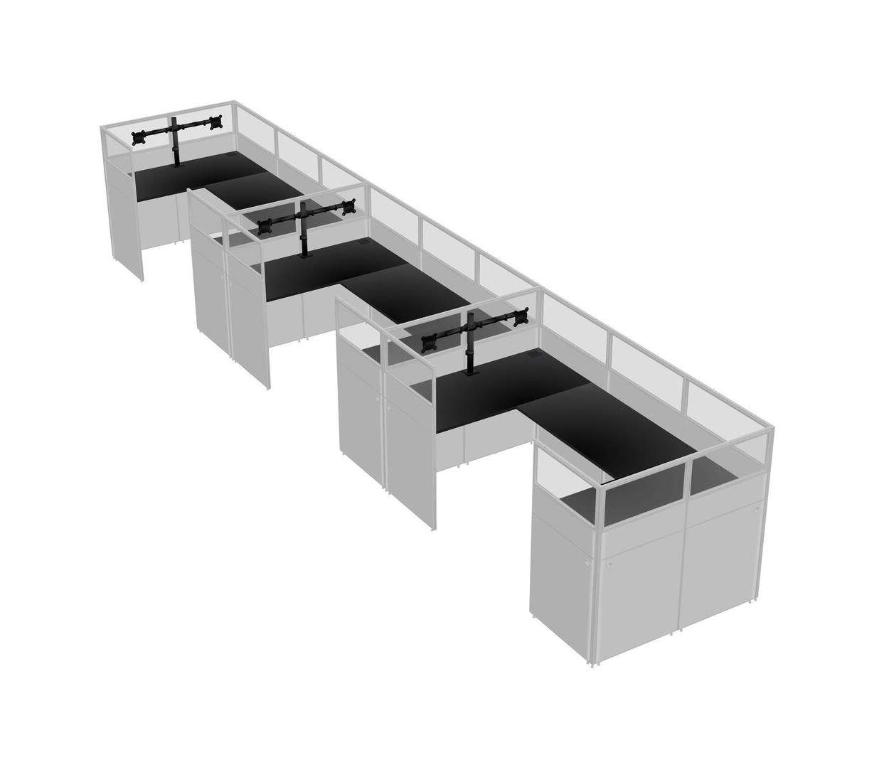 Black U-shaped Panel System For 3 Person + Monitor Arm (double Arms) For 3 User(s)