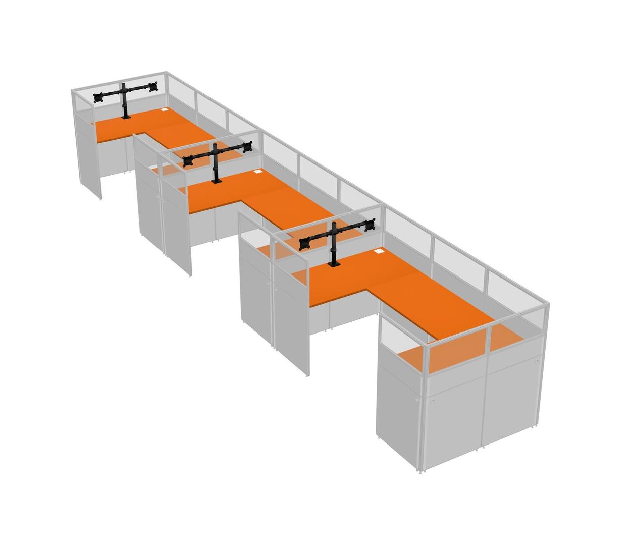 Orange U-shaped Panel System For 3 Person + Monitor Arm (double Arms) For 3 User(s)
