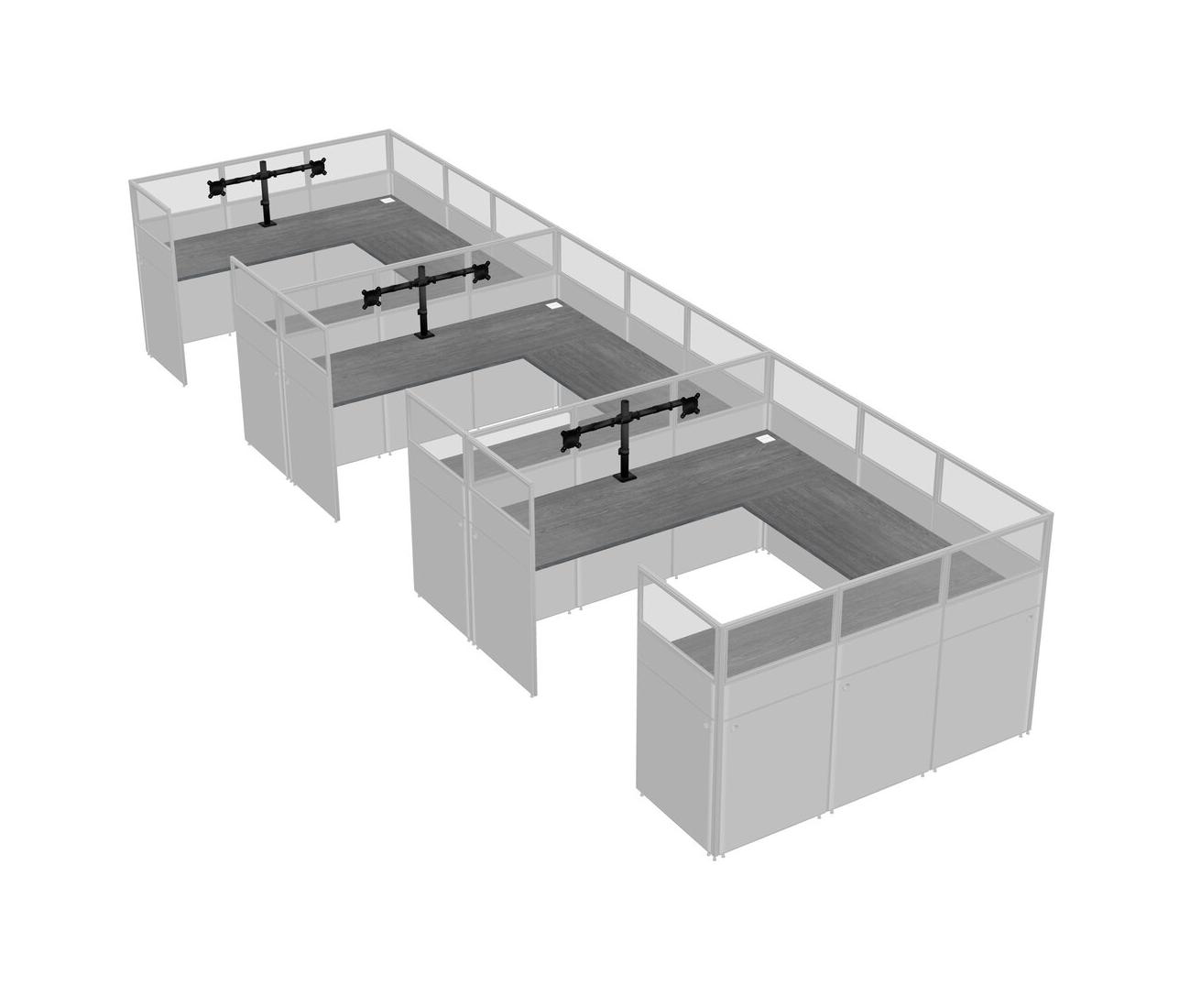 Grey U-shaped Panel System For 3 Person + Monitor Arm (double Arms) For 3 User(s)