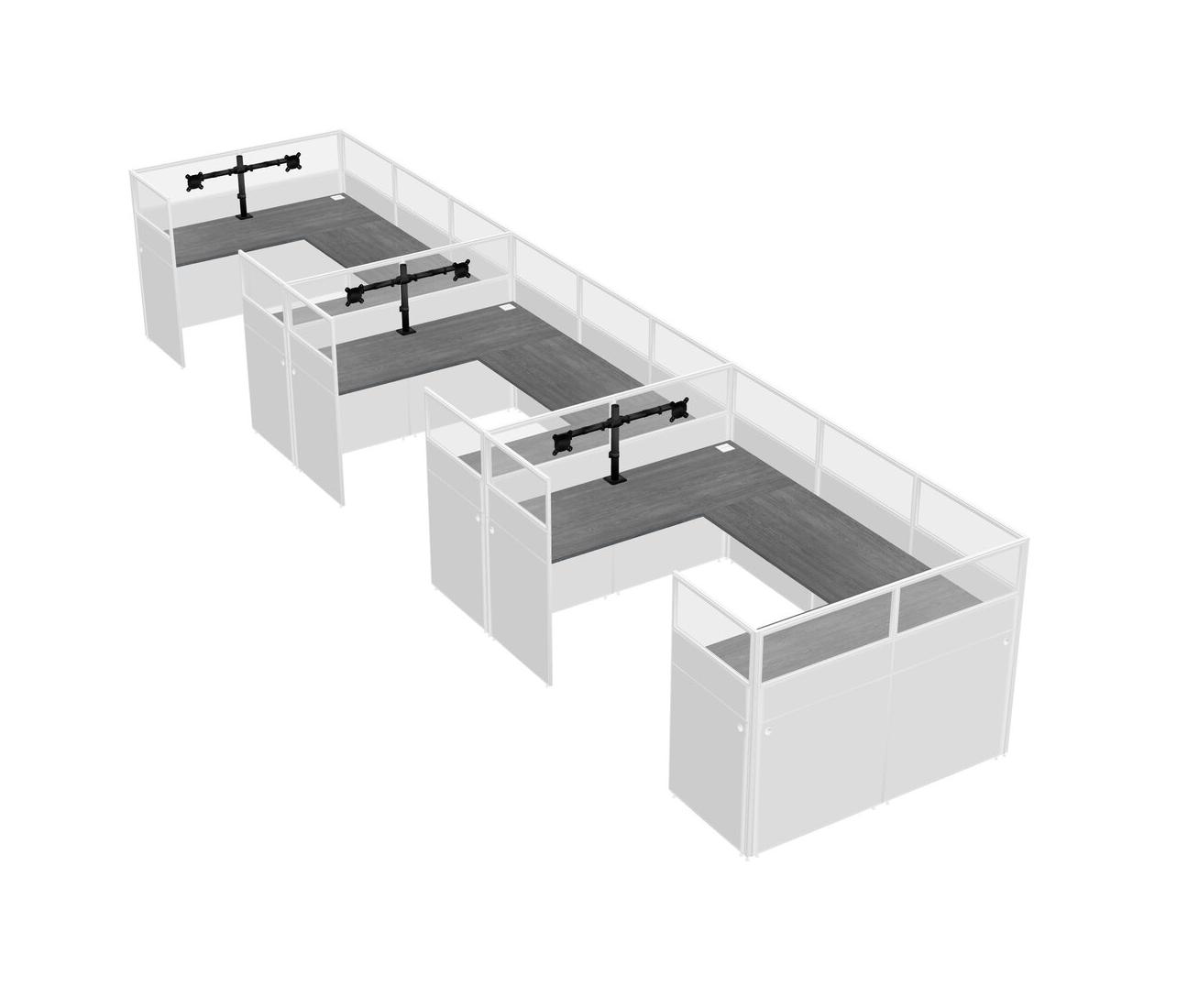 Grey U-shaped Panel System For 3 Person + Monitor Arm (double Arms) For 3 User(s)